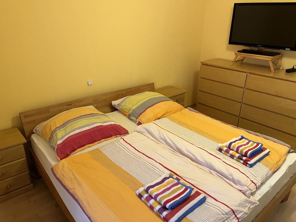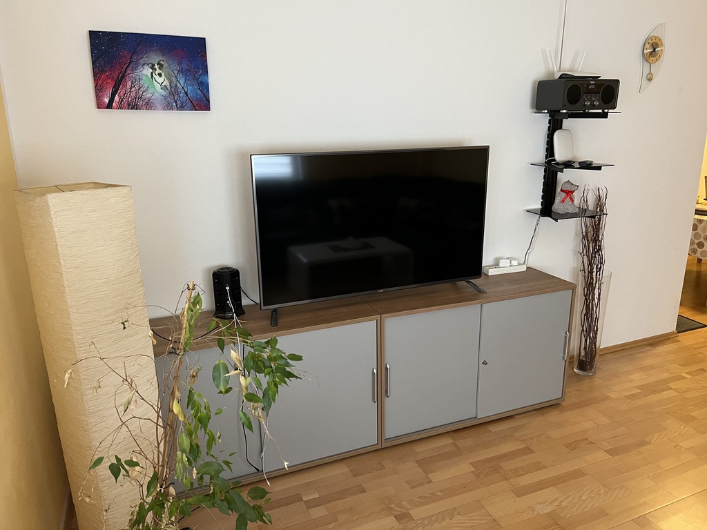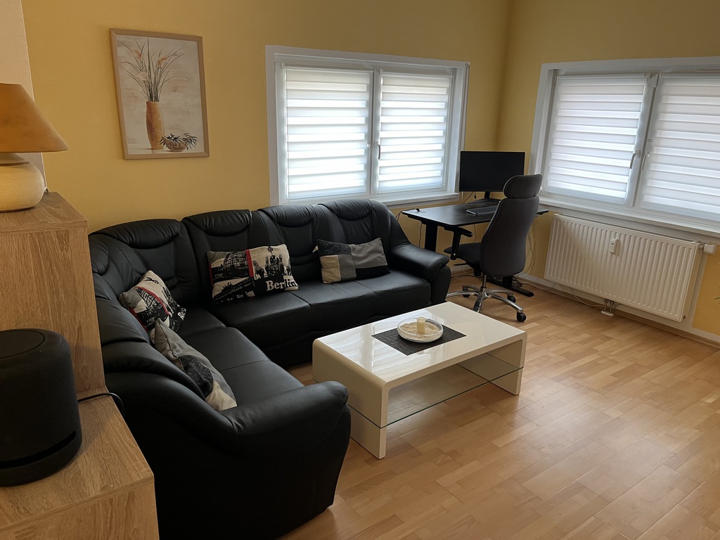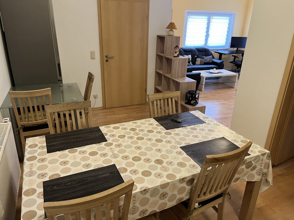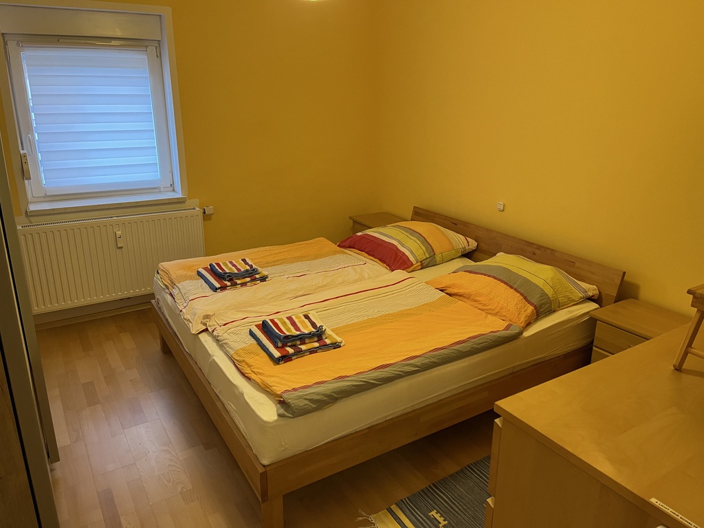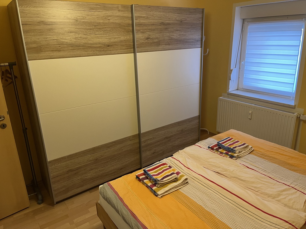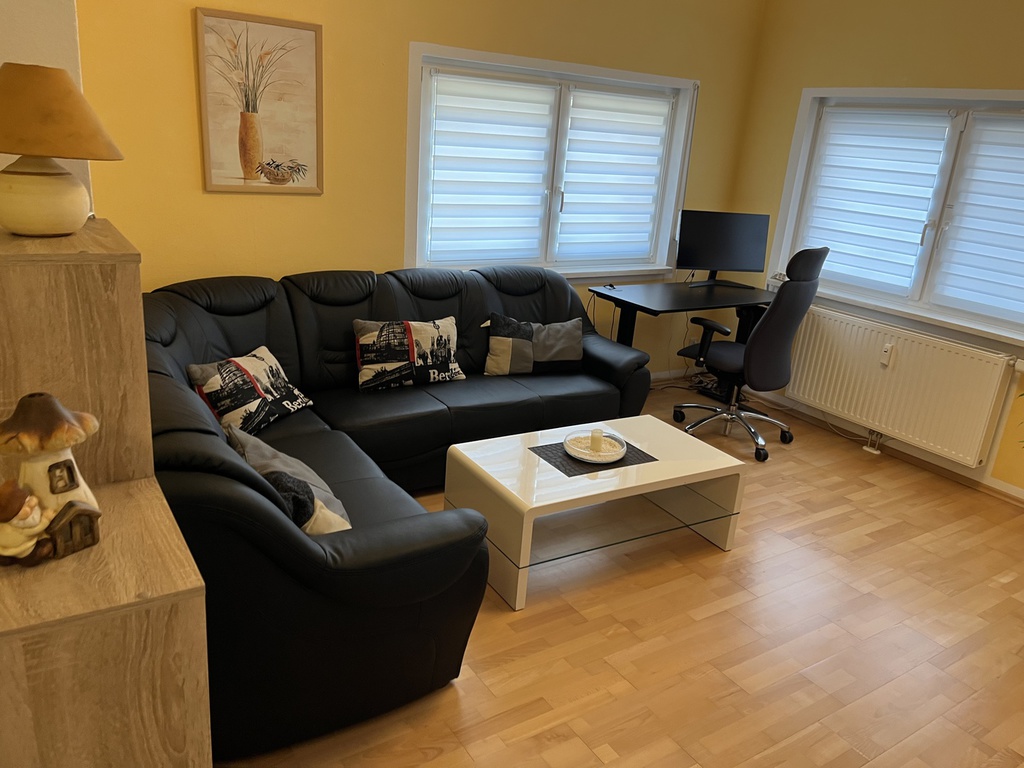 Ausstattung: Komplette Einbauküche mit 5-Platten-Elektoherd, Backofen, Geschirrspüler, Töpfen, Geschirr, Kaffeemaschine mit Thermokanne, Wasserkocher und Toaster. Bad ist mit einer Badewanne, mit einer Dusche mit Sitz und WC ausgestattet. Die Wohnung verfügt zudem über ein gemütliches Wohn-/Esszimmer, welches mit einem 40"-Flachbildschirm-TV, einer Wohnwand, einem Esstisch mit 4 Stühlen, einem Couchtisch, einer gemütlichen Couch (auch als Schlafsofa für 1 Person nutzbar). Das Schlafzimmer ist mit einem Doppelbett, einem großen Kleiderschrank und mit einem weiteren 32"-Flachbildschirm-TV eingerichtet.