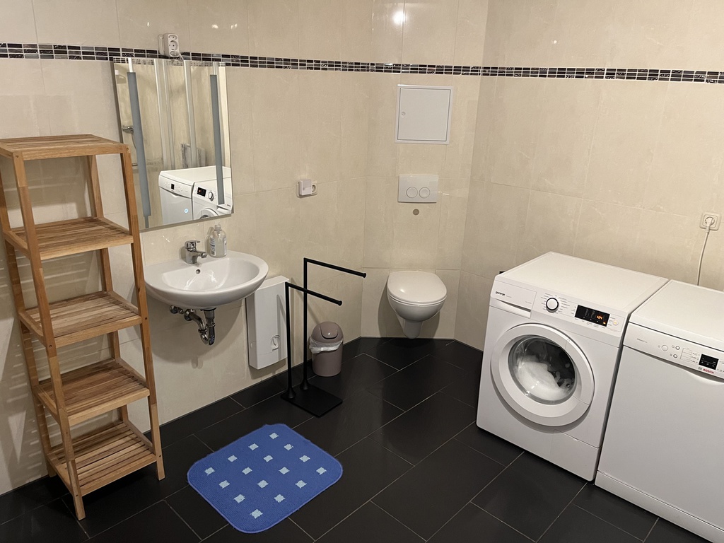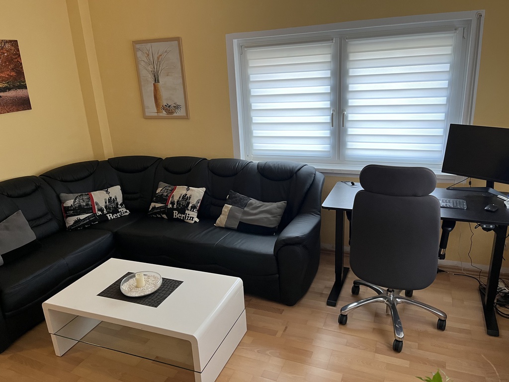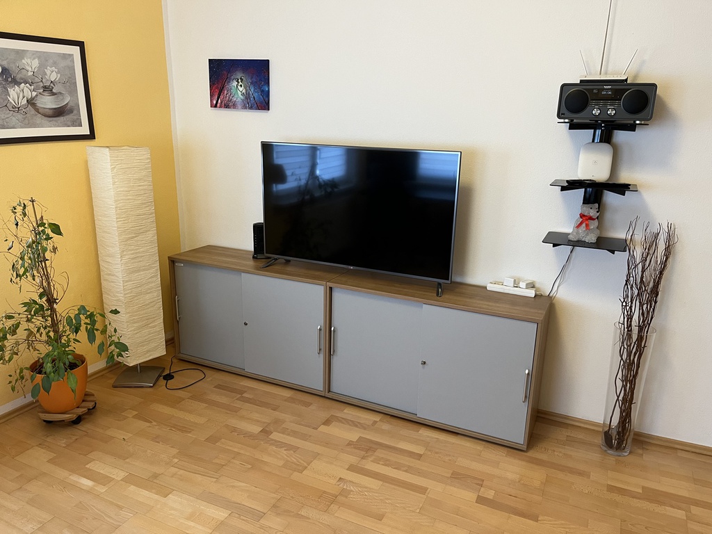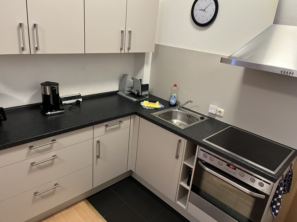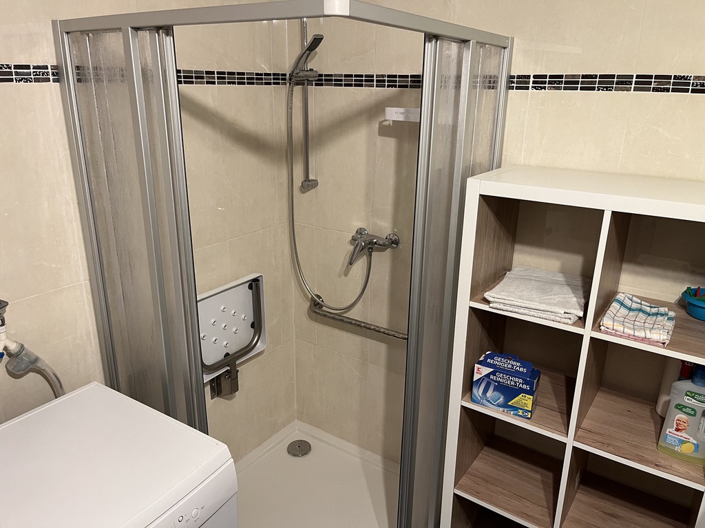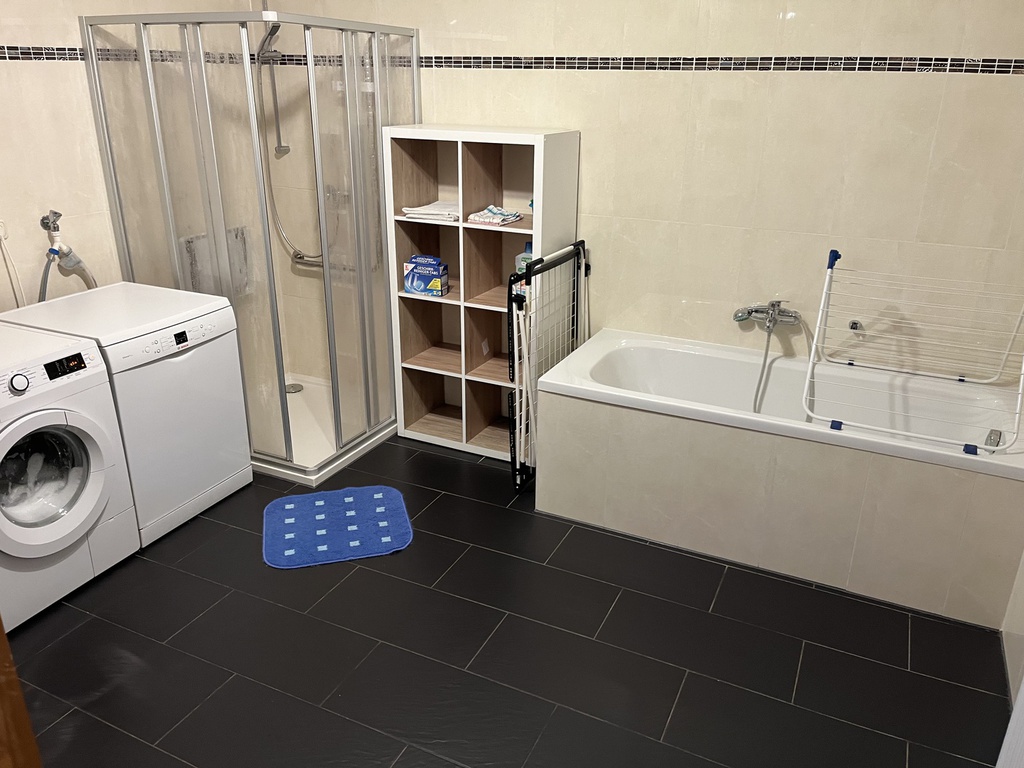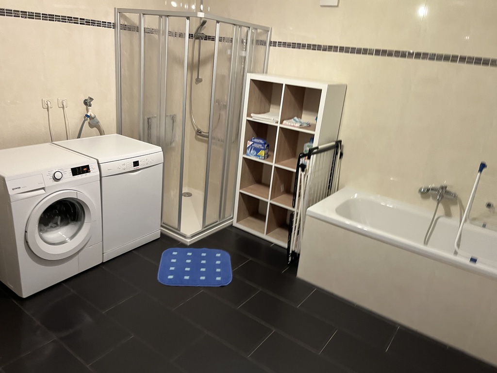 Ausstattung: Komplette Einbauküche mit 5-Platten-Elektoherd, Backofen, Geschirrspüler, Töpfen, Geschirr, Kaffeemaschine mit Thermokanne, Wasserkocher und Toaster. Bad ist mit einer Badewanne, mit einer Dusche mit Sitz und WC ausgestattet. Die Wohnung verfügt zudem über ein gemütliches Wohn-/Esszimmer, welches mit einem 40"-Flachbildschirm-TV, einer Wohnwand, einem Esstisch mit 4 Stühlen, einem Couchtisch, einer gemütlichen Couch (auch als Schlafsofa für 1 Person nutzbar). Das Schlafzimmer ist mit einem Doppelbett, einem großen Kleiderschrank und mit einem weiteren 32"-Flachbildschirm-TV eingerichtet.